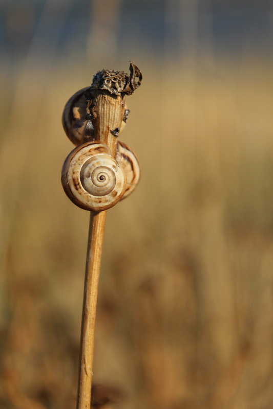A priori, la faible vitesse de déplacement des escargots les rendent plus faciles à photographier que les autres insectes. Mais c’est sans compter sur le vent lorsqu’ils sont perchés en haut d’une branche !