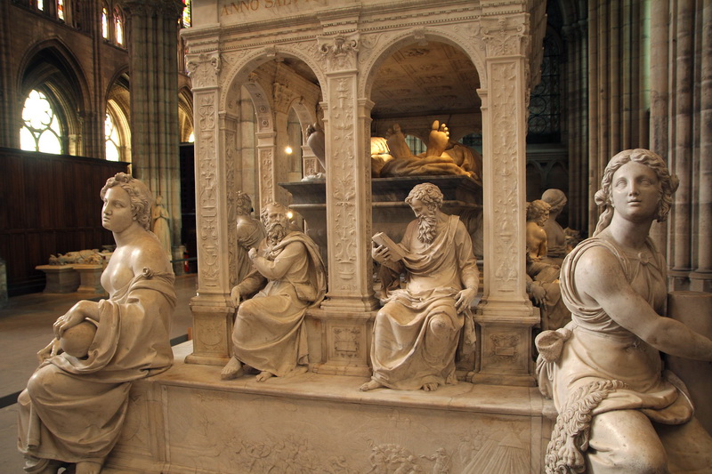 La Basilique de Saint-Denis. Gisants de Henri II et Catherine de Médicis et, au fond, Marie de Bourbon-Vendôme.