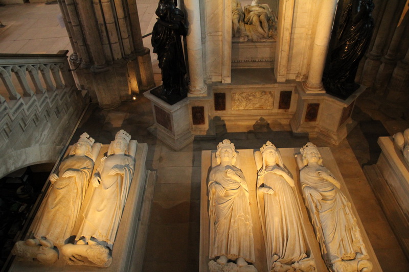La Basilique de Saint-Denis. Gisants de Philippe VI, Jean II le Bon, Philippe V le Long, Jeanne d’Evreux, Charles IV le Bel et, au fond, Henri II et Catherine de Médicis.