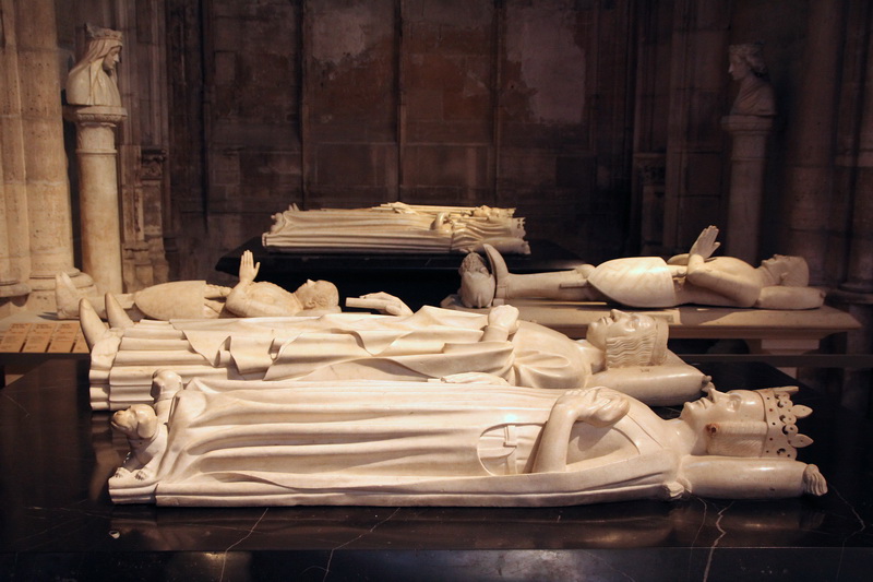 La Basilique de Saint-Denis. Gisants de Bertrand de Bourbon, Charles V le Sage, Bertrand du Guesclin, Louis de Sancerre, Charles VI et Isabeau de Bavière.