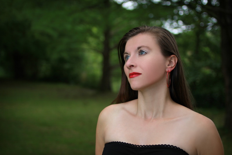 • L’éventail est une idée de Shanna qui me l’a proposé en cours de shooting. Ça peut paraître étonnant ou incongru mais j’aime bien car les couleurs s’accordent : vert avec le fond et les touches de rouge avec le maquillage. En plus, je trouve que ça donne un petit air des années folles, quand les dames sortaient en campagne avec leur… éventail. 🙂