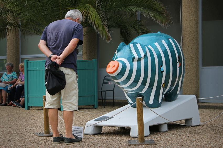 Je n’aime pas photographier les œuvres d’artistes sans ajouter ma touche personnelle, comme par exemple une interaction entre l’œuvre et un autre élément de la scène. Si vous voulez voir les 15 cochons, je vous invite à visiter le site officiel (en .bzh !) : www.pigparade.bzh