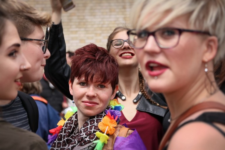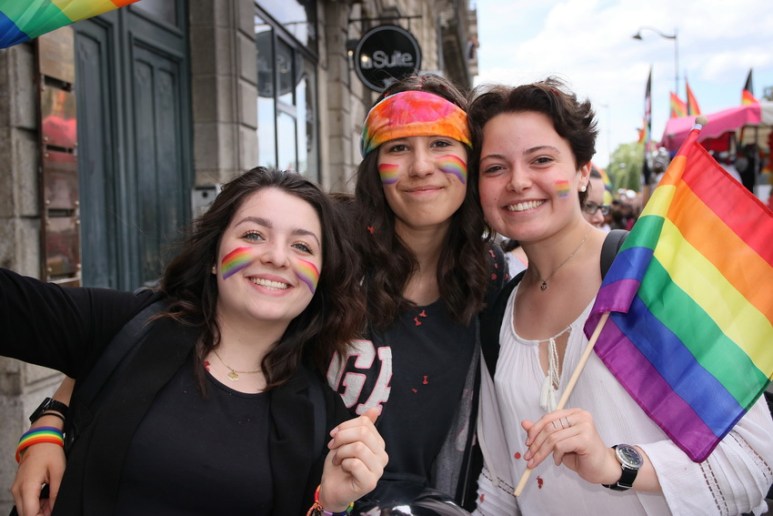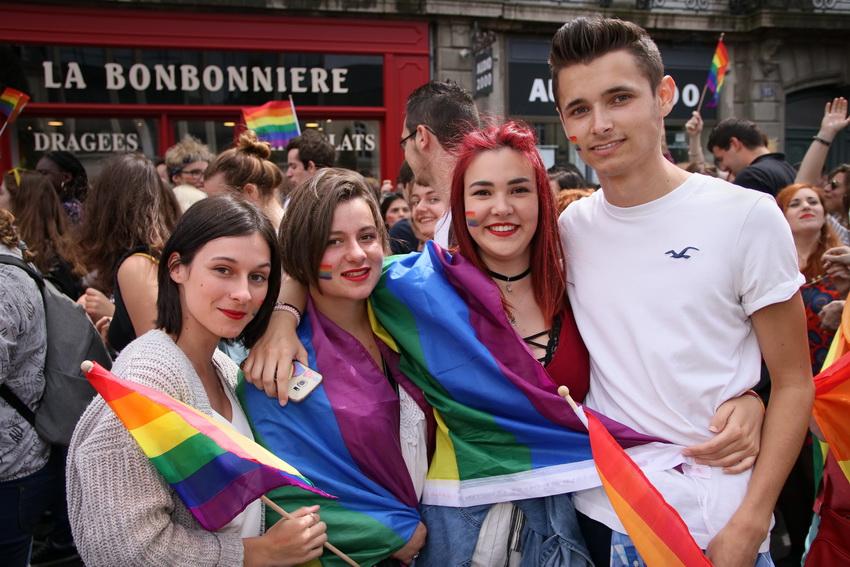 Paradoxalement, les filles sont bien plus nombreuses que les garçons à la gay-pride de Rennes. Et beaucoup sont effectivement très jolies. 🙂