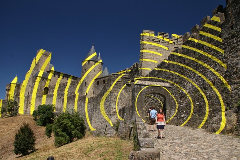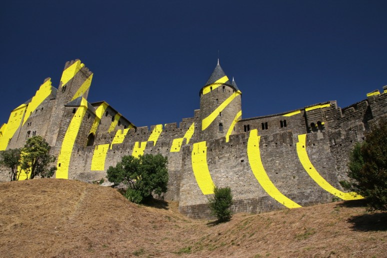 Œuvre de Felice Varini sur la cité médiévale de Carcassonne (Aude, France).