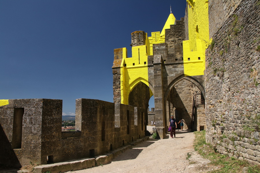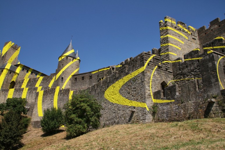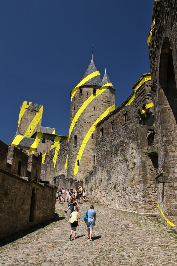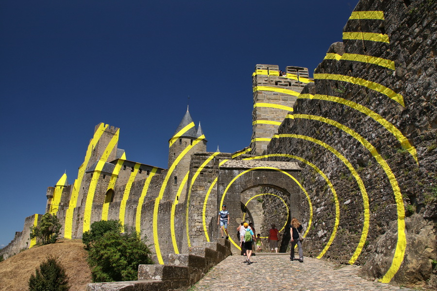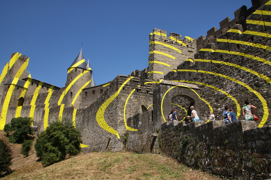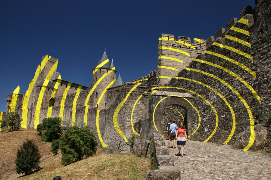 Effectivement, ça aurait été dommage que ces cercles restent sur les murs à jamais, mais ce n’est pas le cas. Il s’agit vraiment d’une œuvre éphémère, réalisée pour fêter les 20 ans de l’inscription de Carcassonne au Patrimoine mondial de l’Unesco.