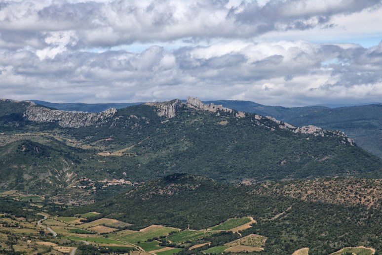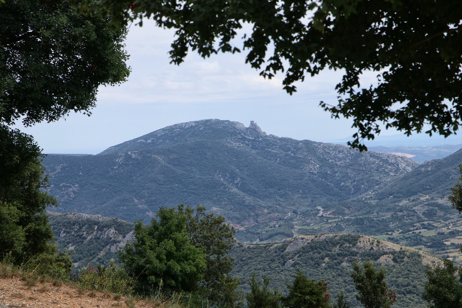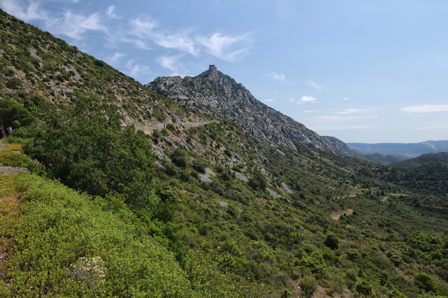 Depuis le chemin qui monte au château, on aperçoit Quéribus :