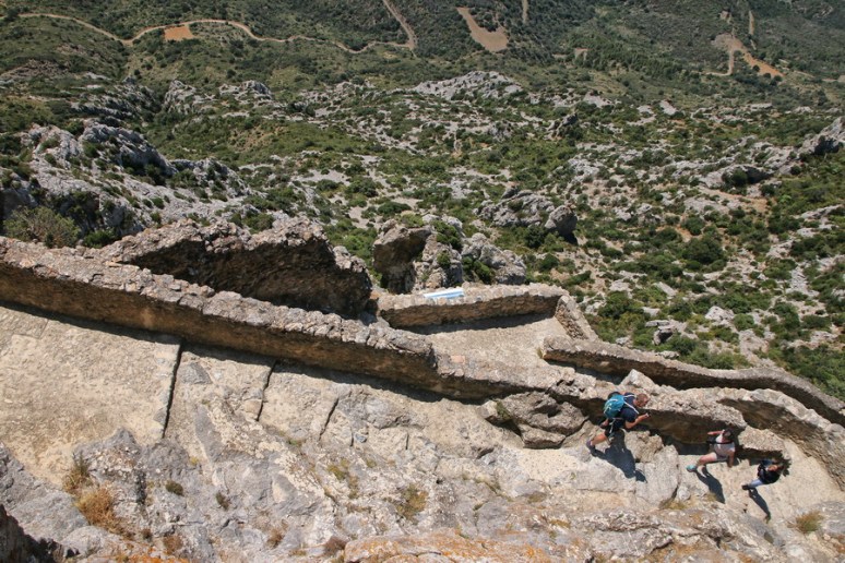 Depuis le donjon-vieux, il faut traverser l’enceinte médiane (dont il ne reste plus grand chose) pour atteindre le donjon San Jordi. Il va encore falloir faire travailler ses fessiers…
