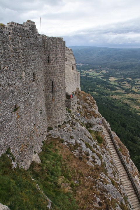 Les deux châteaux que j’ai visités n’ont cependant pas été construits par les Cathares. Il s’agit plutôt de forteresses bâties bien avant le catharisme et reconstruites par le roi de France sur la frontière sud de ses domaines à l’issue de la croisade contre les albigeois. Des châteaux construits donc en terre cathare. Nuance…