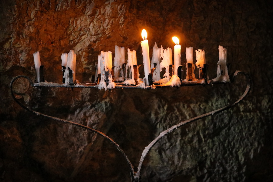 Dans la chapelle de l’ermitage Saint-Antoine-de-Galamus, creusée dans la roche.