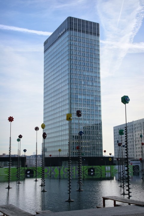 Quartier d’affaires de la Défense, Paris (France). Le Bassin Takis, de Panayotis Vassilakis.