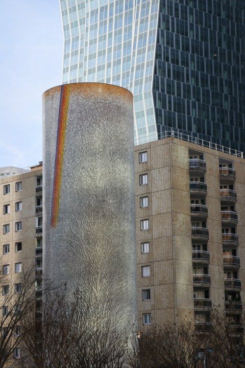 De même, “Le Moretti”, de Raymond Moretti, est aussi une cheminée de ventilation de 32 mètres de haut. Elle est composée de 672 tubes en fibre de verre, peints de 19 couleurs différentes. Au total les tubes font 22 kilomètres de longueur pour un poids total de 27,5 tonnes !