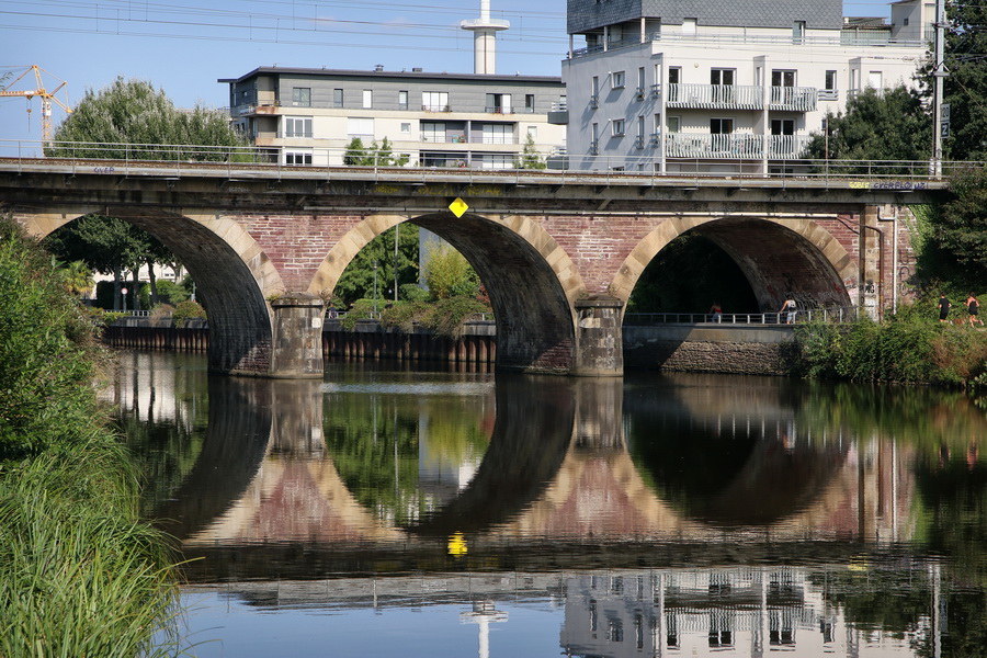 Rennes (Bretagne). Reflet du pont ferroviaire sur la Vilaine.
