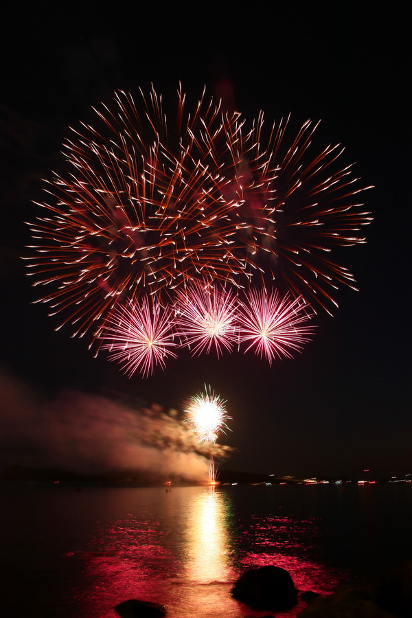 1. je n’ai jamais eu l’occasion de voir un feu d’artifice en bord de mer, les reflets sur l’eau c’est extraordinaire. Belle réussite technique, tes photos sont superbes et ce en doit pas toujours être si simple.