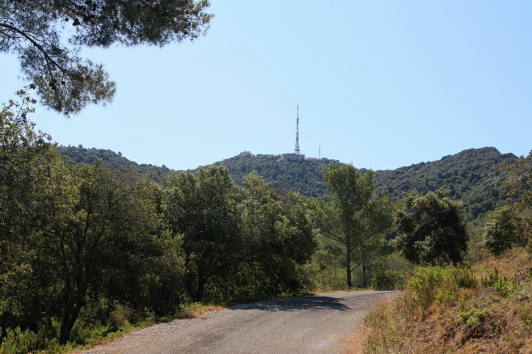 En été, la route d’accès est fermée à cause des risques d’incendie. C’est donc à pieds qu’il faut grimper à la chapelle, que l’on distingue à gauche du pylône de télécommunications, sur la photo ci-dessous (cliquer sur les photos pour les voir avec une meilleure qualité).