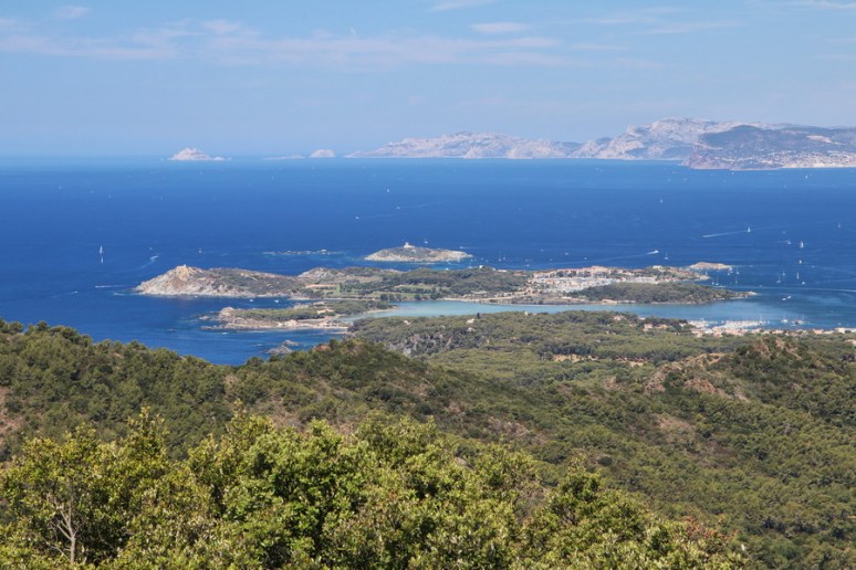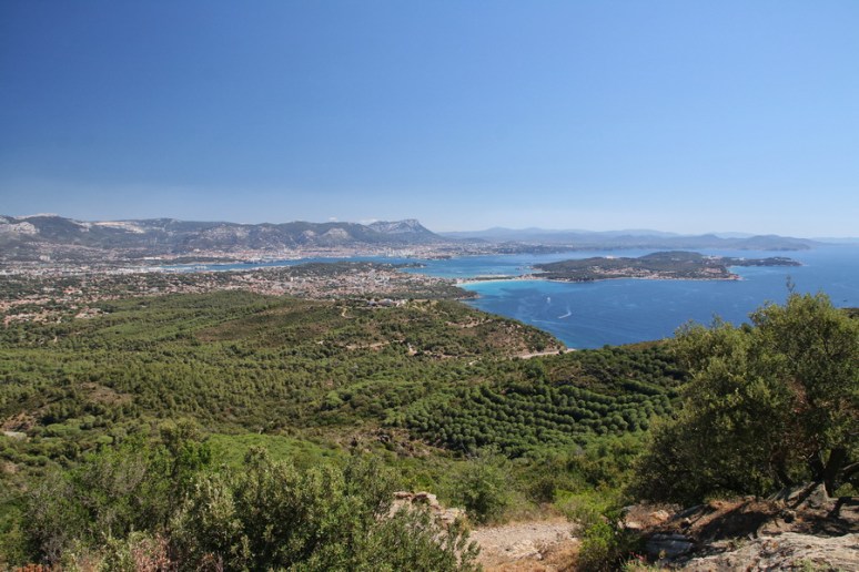 Tout d’abord, en regardant vers l’Ouest, on a une vue magnifique sur le petit archipel des Embiez, dont je vous ai parlé il y a quelques jours (voir notre promenade sur l’île de la Tour Fondue).