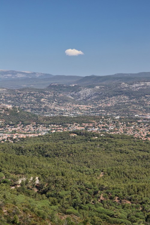 Depuis la chapelle, on voit l’extrémité du Cap Sicié, avec au fond, toutes les îles d’Hyères : la presqu’île de Giens, les îles de Porquerolles, Port-Cros et du Levant. Un panorama exceptionnel !