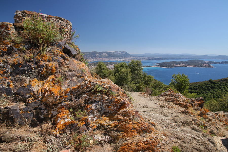 La vue s’étend non-seulement sur la presqu’île de Saint-Mandrier, mais aussi sur Toulon et toute sa rade.