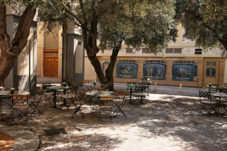 Toulon (Var). Terrasse sur la rue des Riaux.