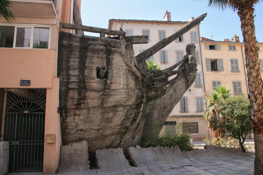 Toulon (Var). Sculpture de bateau sur la Place Vatel.