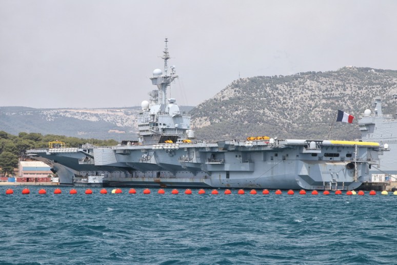 Le porte-avions Charles-de-Gaulle dans le port de Toulon (Var).