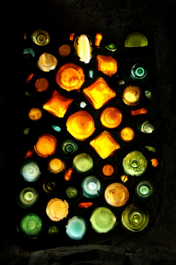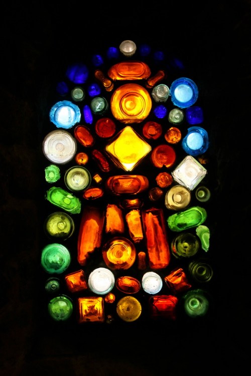 10. Très jolie toutes ces couleurs ! Pour la première photo j’avais pensé à un feu d’artifice. J »aime beaucoup les vitraux en culs de bouteilles, ça donne un aspect sympa chaleureux. Du recyclage !