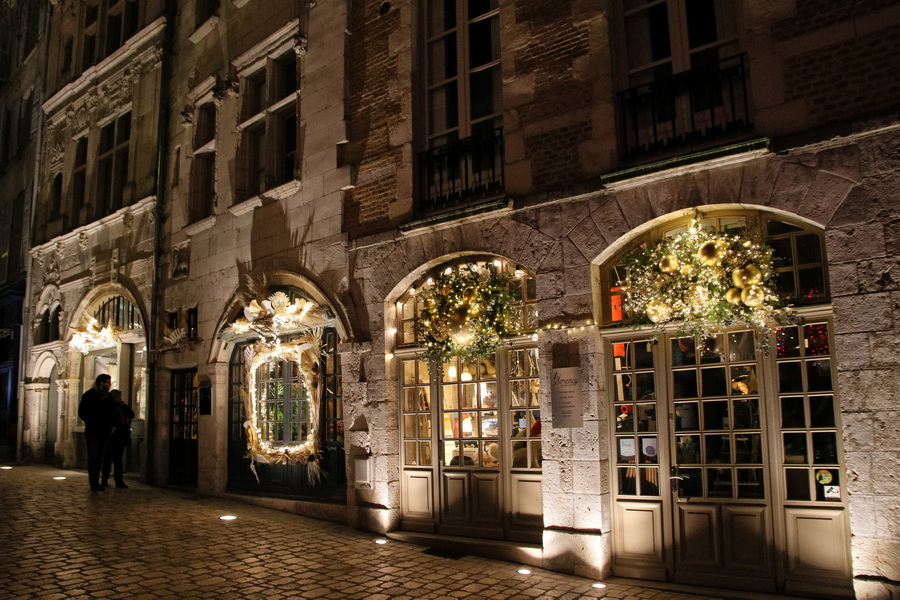 Et puisqu’un certain prince s’est inquiété de ne pas la voir dans l’article précédent, voici la célèbre Jeanne d’Arc sur son destrier de pierre. À noter que la couleur rouge est due aux éclairages du marché de Noël et non pas au bûcher (pas de Noël).