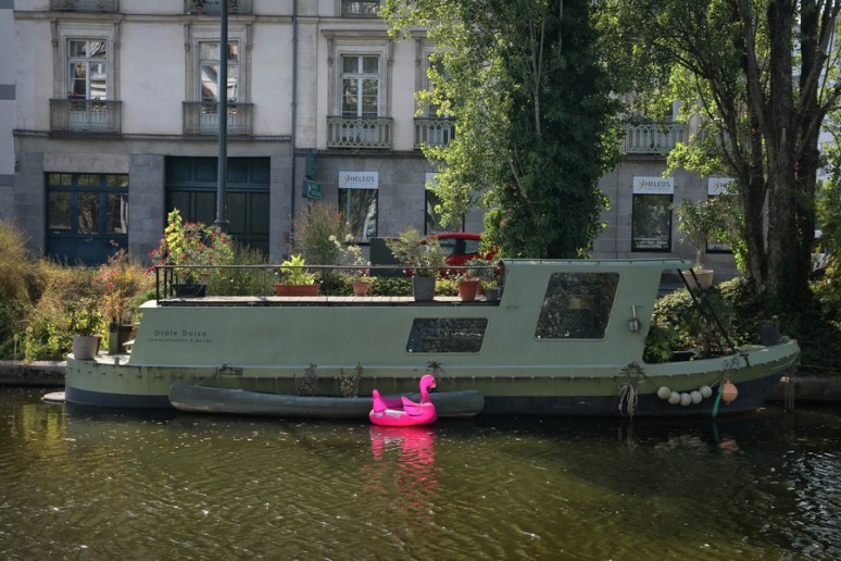 Drôle d’embarcation sur le canal d’Ille et Rance, à Rennes (Bretagne).