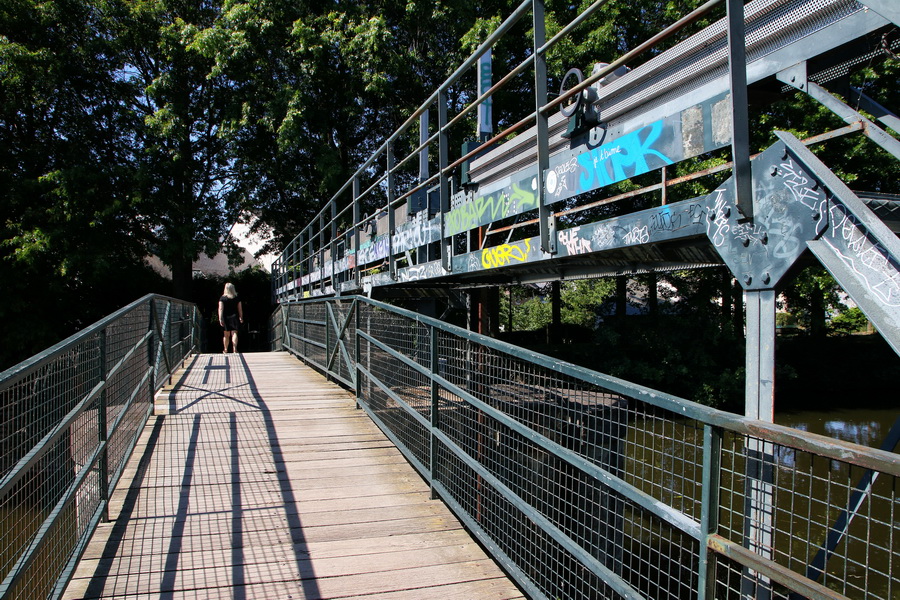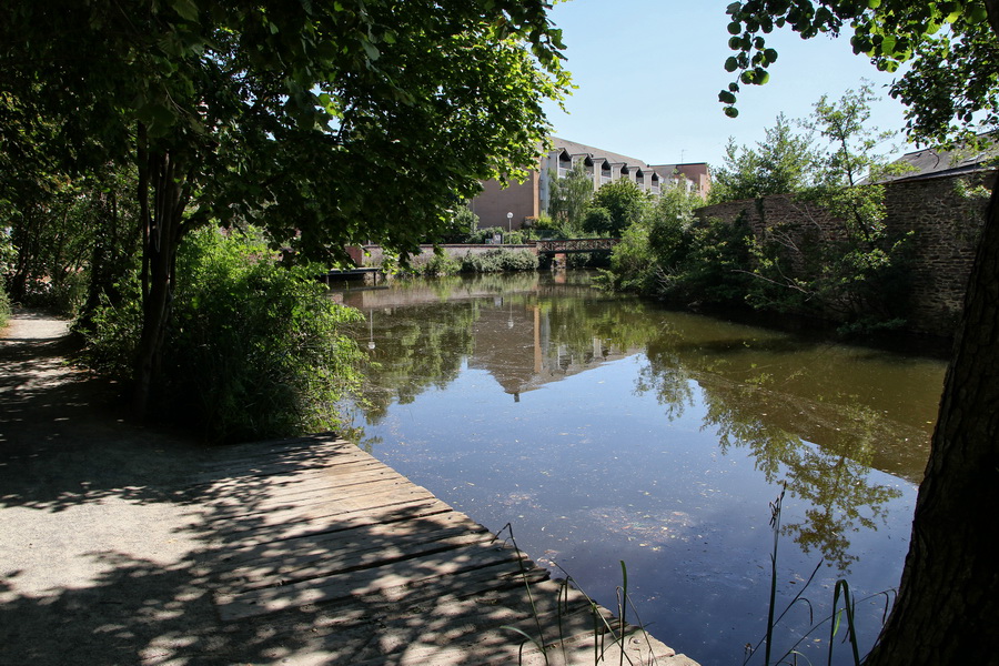 Un chemin longe la rivière sur environ 1 km. C’est une promenade dont je ne vous ai jamais parlé, un sentier que même beaucoup de rennais ignorent, un itinéraire que vous ne trouverez pas dans les guides touristiques. En marchant sur ce chemin, un « étranger » ne soupçonnerait pas qu’il se trouve tout près du centre-ville. Vous pensez que j’exagère ? Voyez vous-même…