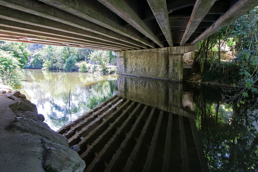 Rennes (Ille-et-Vilaine, Bretagne), le pont du boulevard Maréchal de Lattre de Tassigny vu depuis le barrage sur l’Ille.