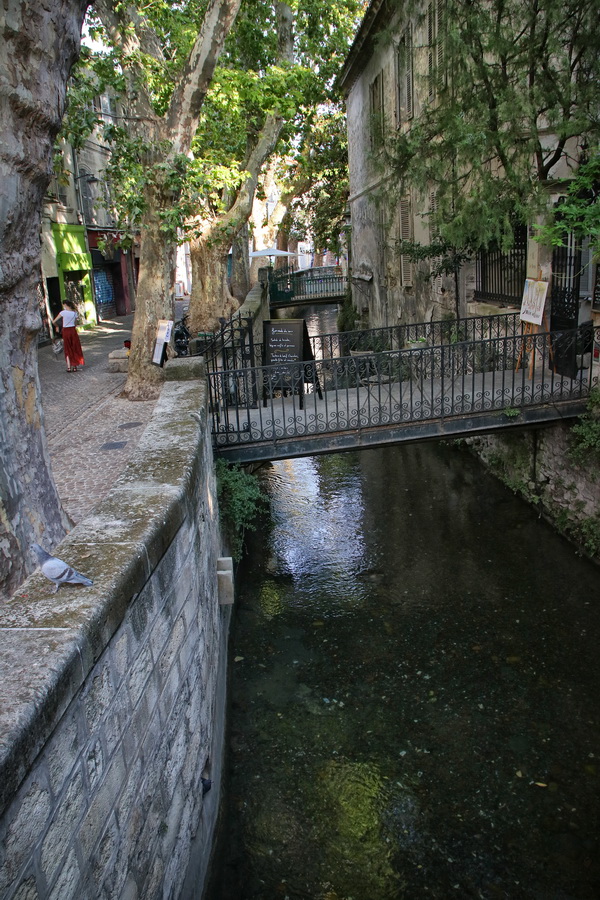 Beaucoup moins connue, la rue des Teinturiers vaut le détour pour son charme, ses moulins entrainés par les eaux de la Sorgue, ses terrasses et ses passerelles.