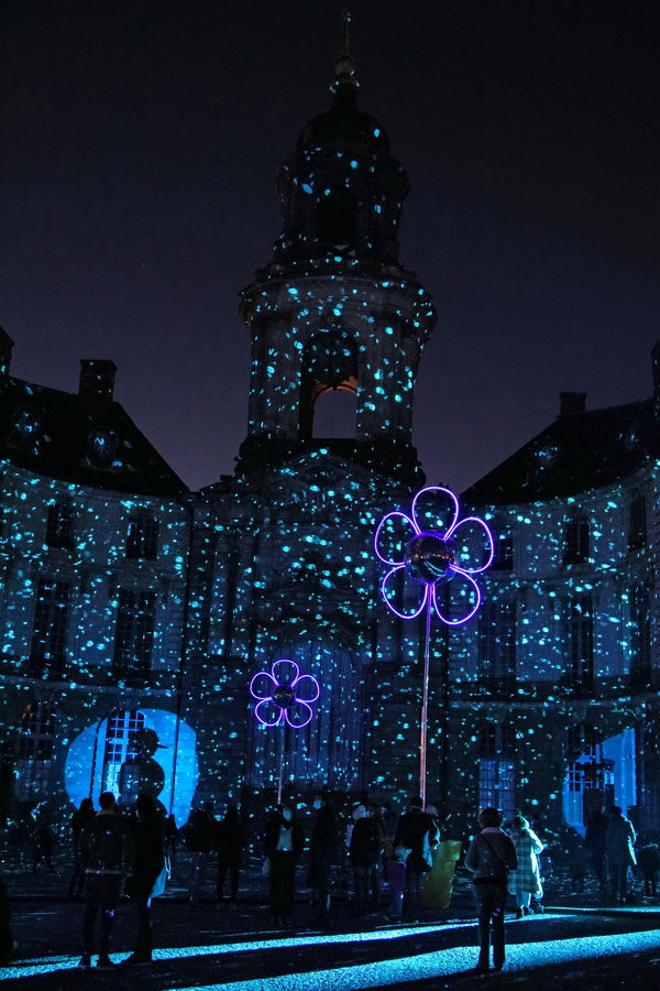 Revenons encore un instant dans la nuit rennaise, afin de terminer notre promenade illuminée, commencée avec mon article d’il y a deux semaines. Malgré les circonstances pourtant peu festives, un spectacle de lumière habillait la mairie. De quoi oublier un moment la lourdeur de l’actualité…