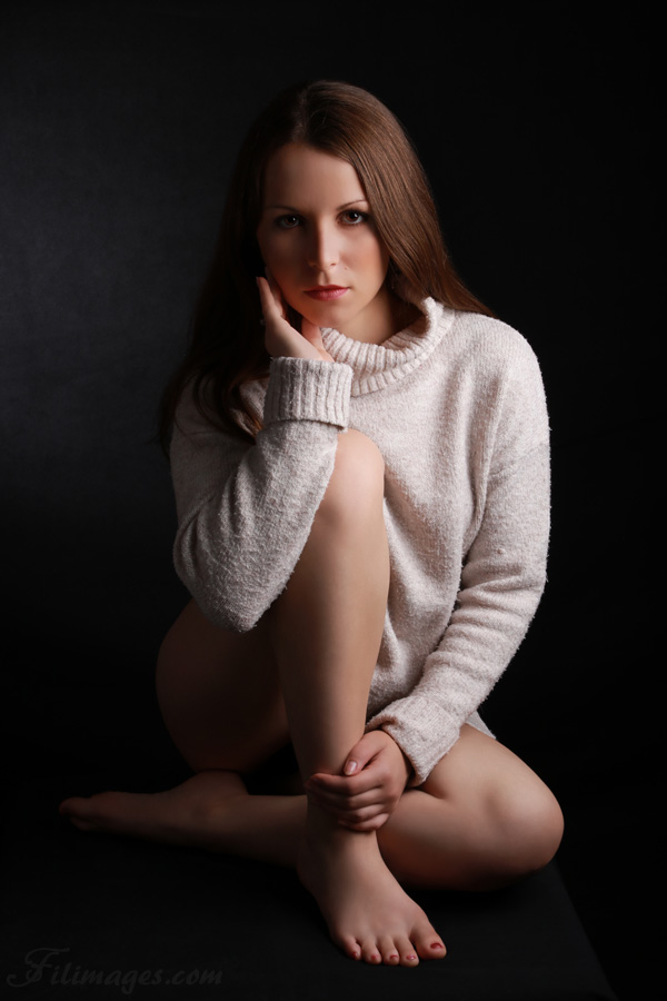 • Le portrait en studio est plus technique que celui en lumière naturelle. C’est un autre plaisir pour un résultat différent. J’avais envie de m’y remettre après m’être offert des nouveaux flashs de studio. Alizée était partante, alors voilà ! Ce jour-là, il faisait beau à l’extérieur mais on a fermé les volets et passé la journée dans le noir !