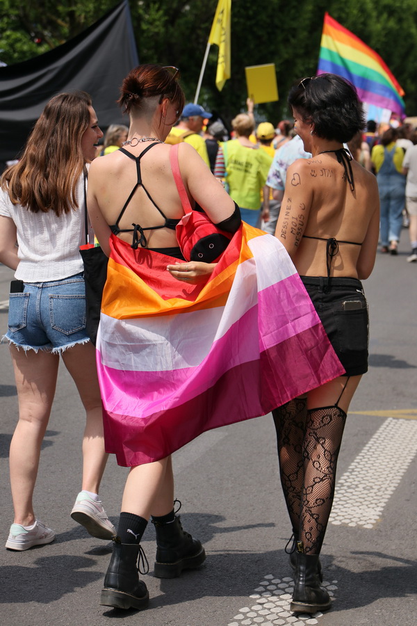 Suite de la marche LGBT rennaise du 17 juin 2023, vue sous deux angles opposés.