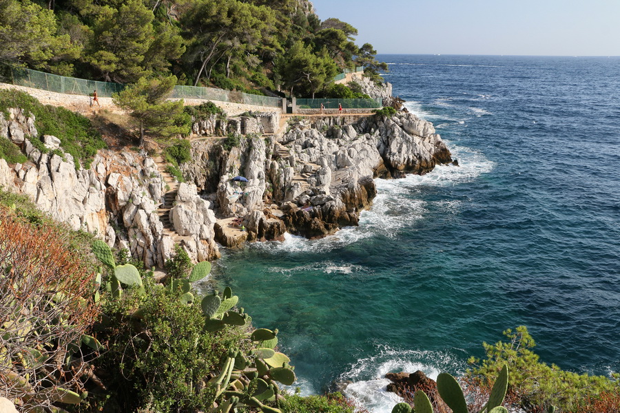Après le phare du Cap Ferrat, sur le versant ouest de la presqu’île, le paysage est plus escarpé.