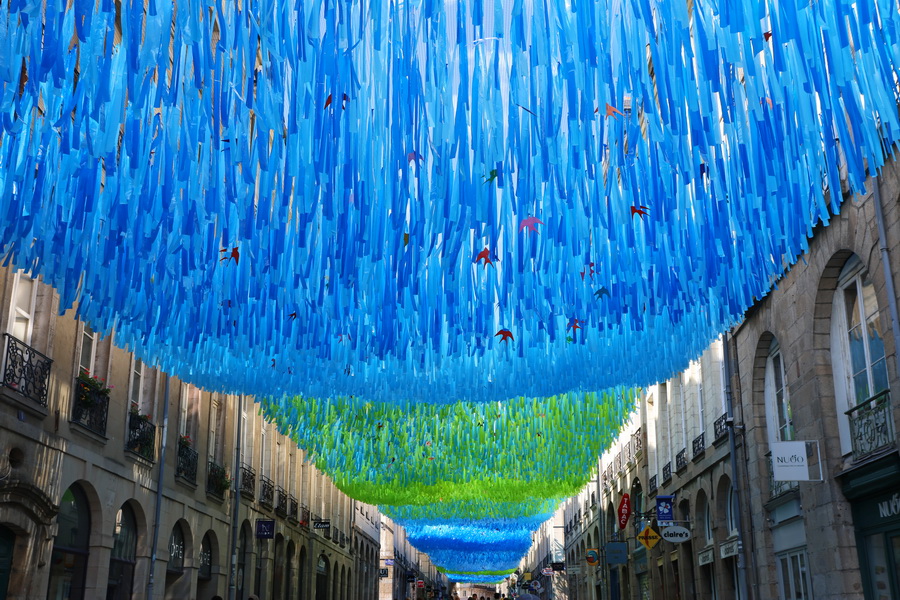 Commençons par une devinette, avec ces 3 photos de la rue d’Estrées, à Rennes. Selon vous, à quoi sert ce qui est suspendu au-dessus de la rue ? (cliquez sur les images pour les agrandir)