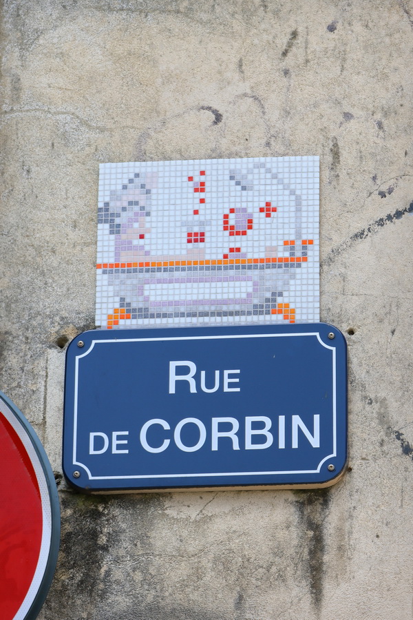 J’ai vu certaines mosaïques de ce genre à Orléans ainsi qu’à Paris pendant mes voyages. Si on essayait de faire une telle chose chez moi, la mairie l’enlèverait le lendemain. Dommage, elles ajoutent un peu de caractère !