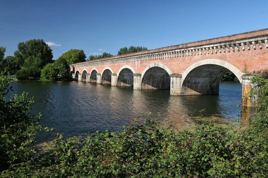 Construit en 1844 et long de 346 m, le pont-canal du Cacor permet le passage du canal latéral à la Garonne au-dessus du Tarn.