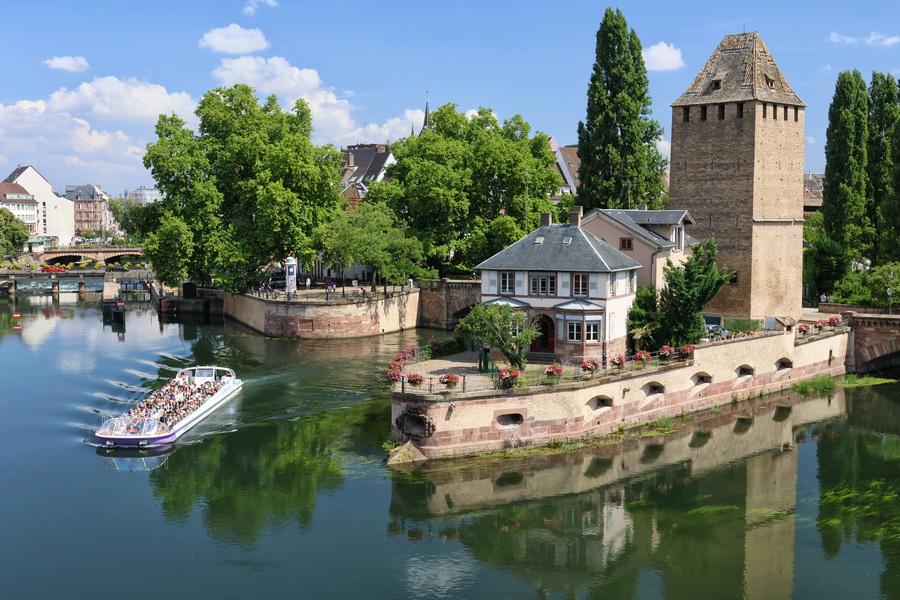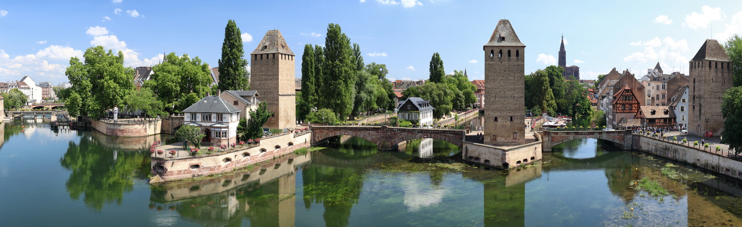 À l’ouest du quartier de la Petite France, se trouvent les Ponts Couverts… qui ne sont plus couverts depuis le 18ème siècle. Les quatre tours qui gardent les trois ponts sur l’Ill sont des vestiges de l’ancienne muraille du 13ème siècle.