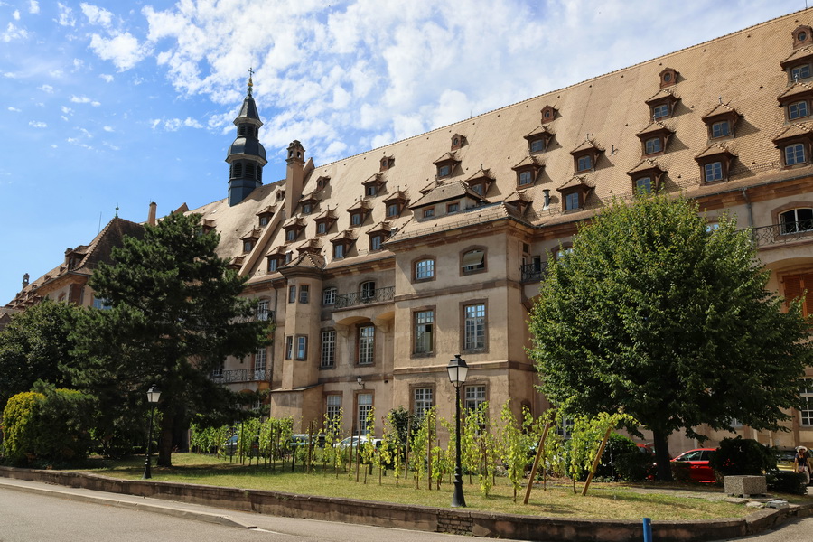 Je vous rassure, Strasbourg est doté d’un hôpital plus moderne que celui en photo ci-dessous. A priori, cet ancien bâtiment semble n’abriter que des bureaux. Mais qui pourrait croire que la plus vieille cave de Strasbourg est située sous cet ancien hôpital ? Mais pourquoi y a-t-il une cave à vin sous un hôpital ?
