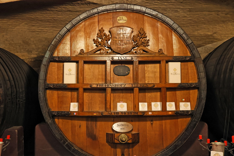 Le plus grand foudre de la cave a une contenance de 26 080 litres. Construit en 1881, il a été présenté à l’Exposition Universelle de Paris en 1900.