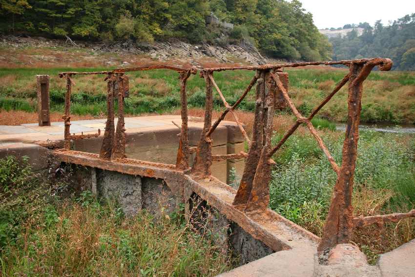 - Ancienne écluse au fond du lac de Guerlédan asséché en 2015 (Bretagne).