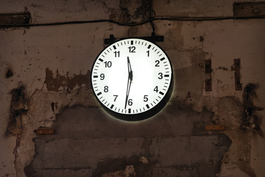 - Nantes (Loire-Atlantique). Horloge dans le bar du Lieu Unique (ancienne biscuiterie LU).