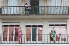 - Famille d’ours au balcon, à Uzès.