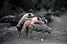 Pour les cochons, par contre, j’ai eu un vrai coup de chance de tomber sur cette scène cocasse au détour d’un virage en Corse. J’ai juste eu le temps de baisser la vitre de la voiture et prendre une seule photo, puis le trio s’est séparé.