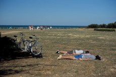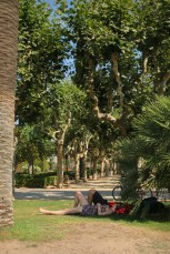 - Sieste dans le Jardin du Peyrou, à Montpellier.