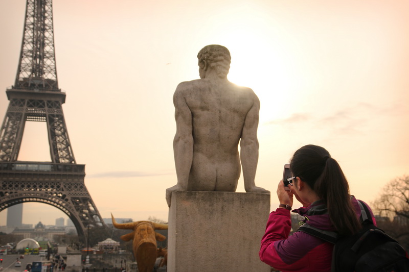 - Selfies devant la pyramide du Louvre (Paris).