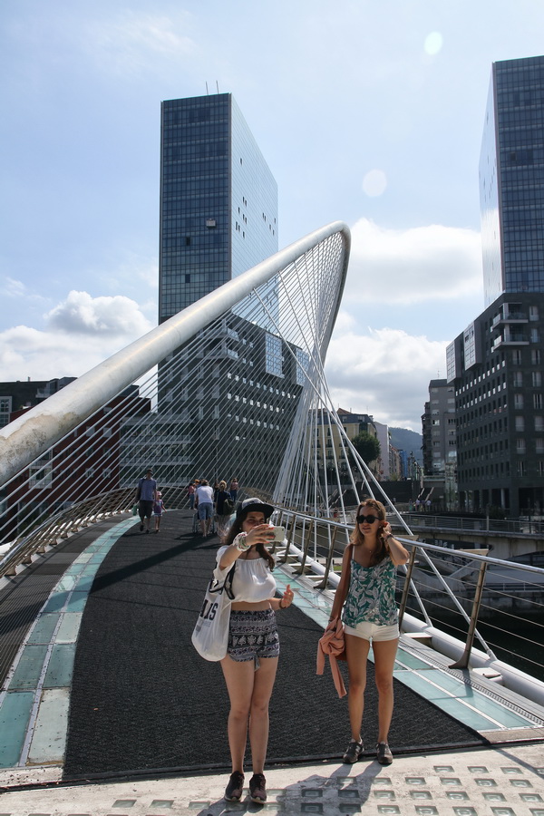- Selfie sur le pont de Zubizuri, à Bilbao (Pays Basque, Espagne).