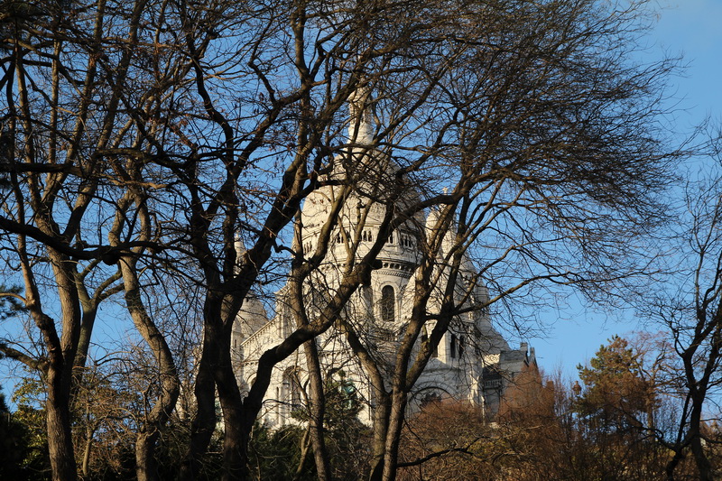 Paris, Montmartre. La Basilique du Sacré-Cœur vue depuis la rue Ronsard.