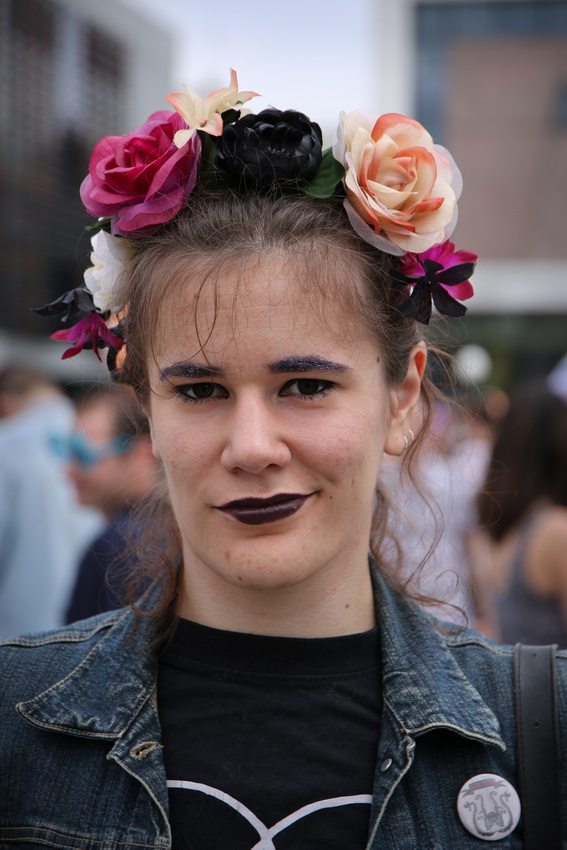 Encore merci ! Une marche LGBT est une occasion privilégiée pour faire ce genre de portraits : Les gens sont très sympas et ouverts. De plus, ils sont là pour se montrer (c’est le but !). Alors j’en profite sans oublier de leur donner mes coordonnées pour qu’ils puissent récupérer leur photo. C’est une relation « gagnant-gagnant » !