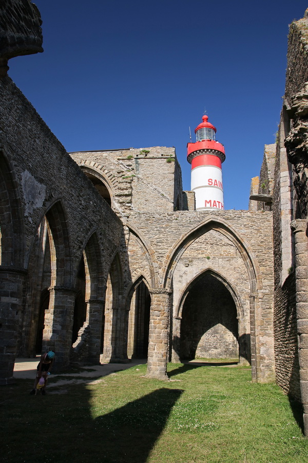 Les ruines de l’Abbaye de Fineterre en Saint-Mathieu et le phare de la Pointe Saint-Mathieu, à Plougonvelin (Finistère, Bretagne).